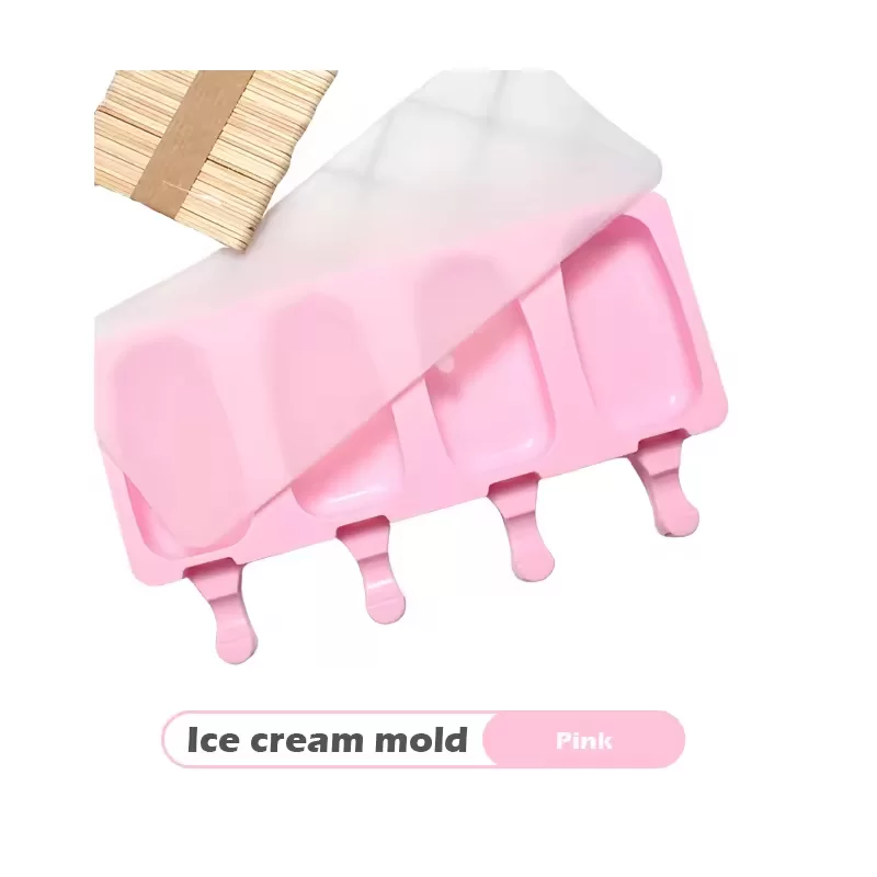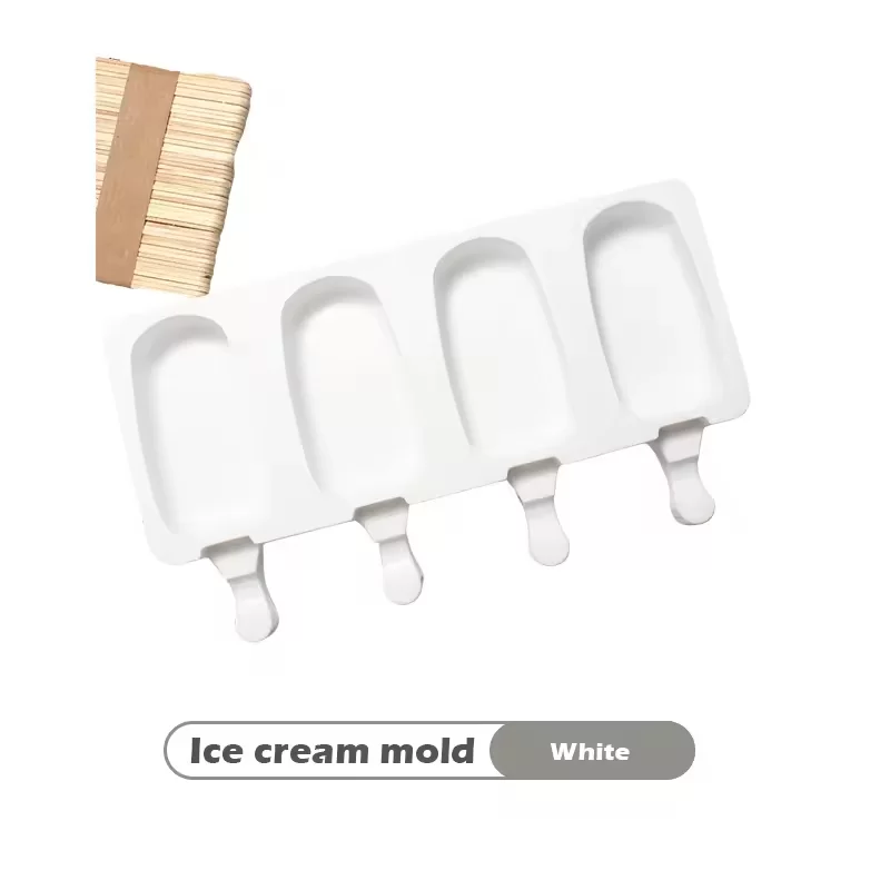 Cute 4 Holes DIY Ice Cube Mold Food Grade Silicone Easy Release Household Large Oval Ice Cream Popsicle Mould