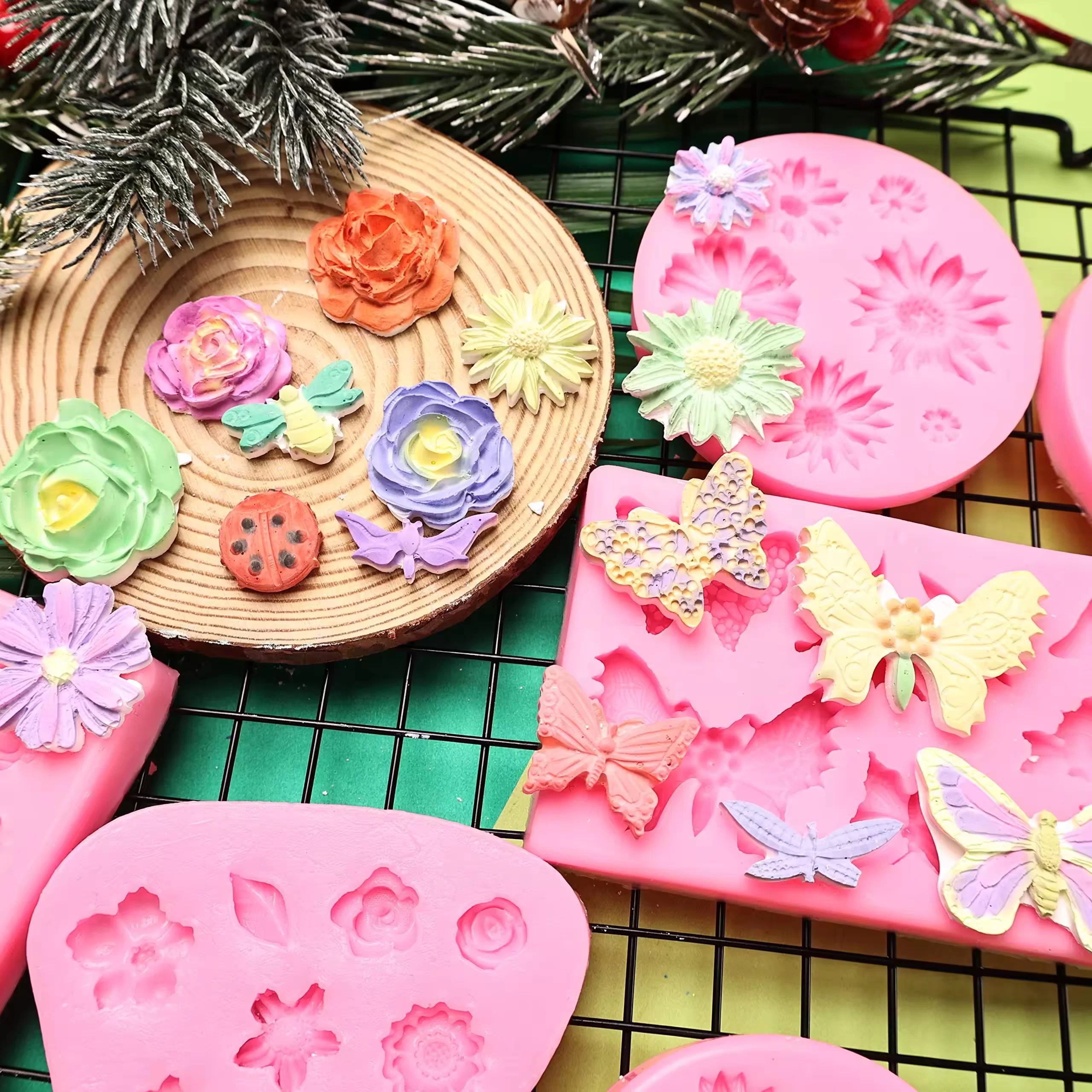 Flower Fondant Molds Flower and Butterfly Candy Silicone Molds