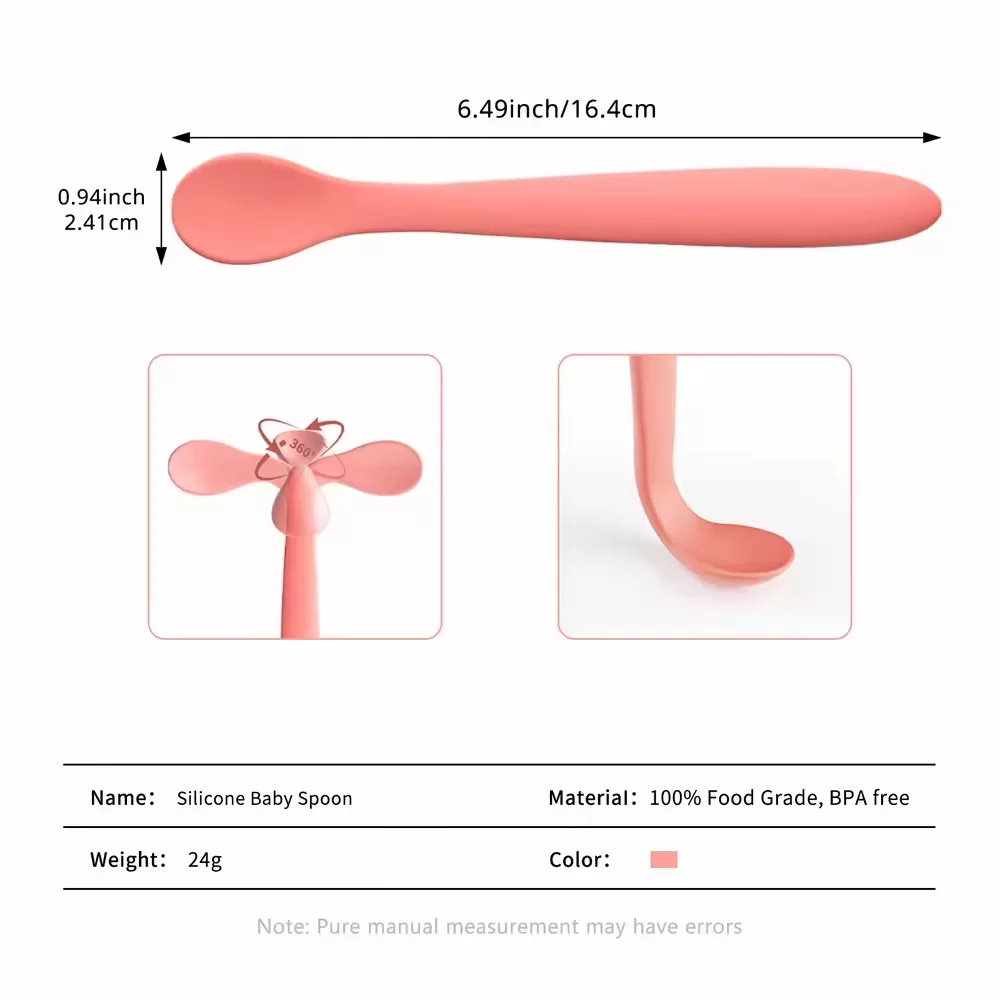 Soft Tip Dishwasher Safe Reusable Bendable Silicone Baby Spoon